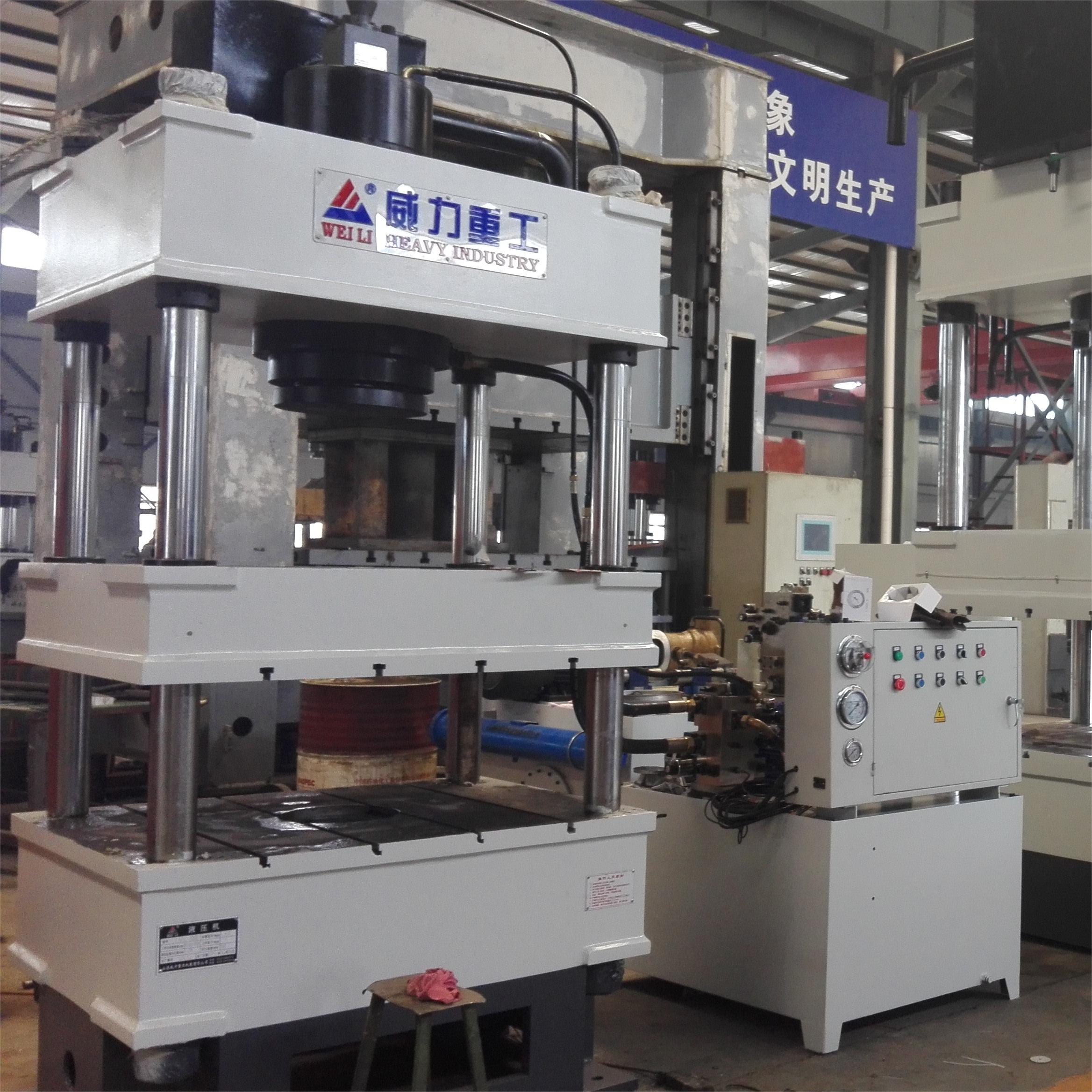 【產品描述】:200噸三梁四柱液壓機YW32-200T是一款小型液壓機,這款液壓機適用于金屬材料的壓制工藝,如:金屬沖壓彎曲、翻邊、薄板拉伸和金屬零件的壓裝、校正、冷擠等,還可實現塑料制品、粉末制品的壓制成型工藝。 200噸三梁四柱液壓機分為主機、液壓傳動裝置和電氣控制裝置三部分組成,具有獨立的液壓傳動裝置和電氣控制箱,可以在操縱臺集中控制,實現調整、手動和半自動循環三