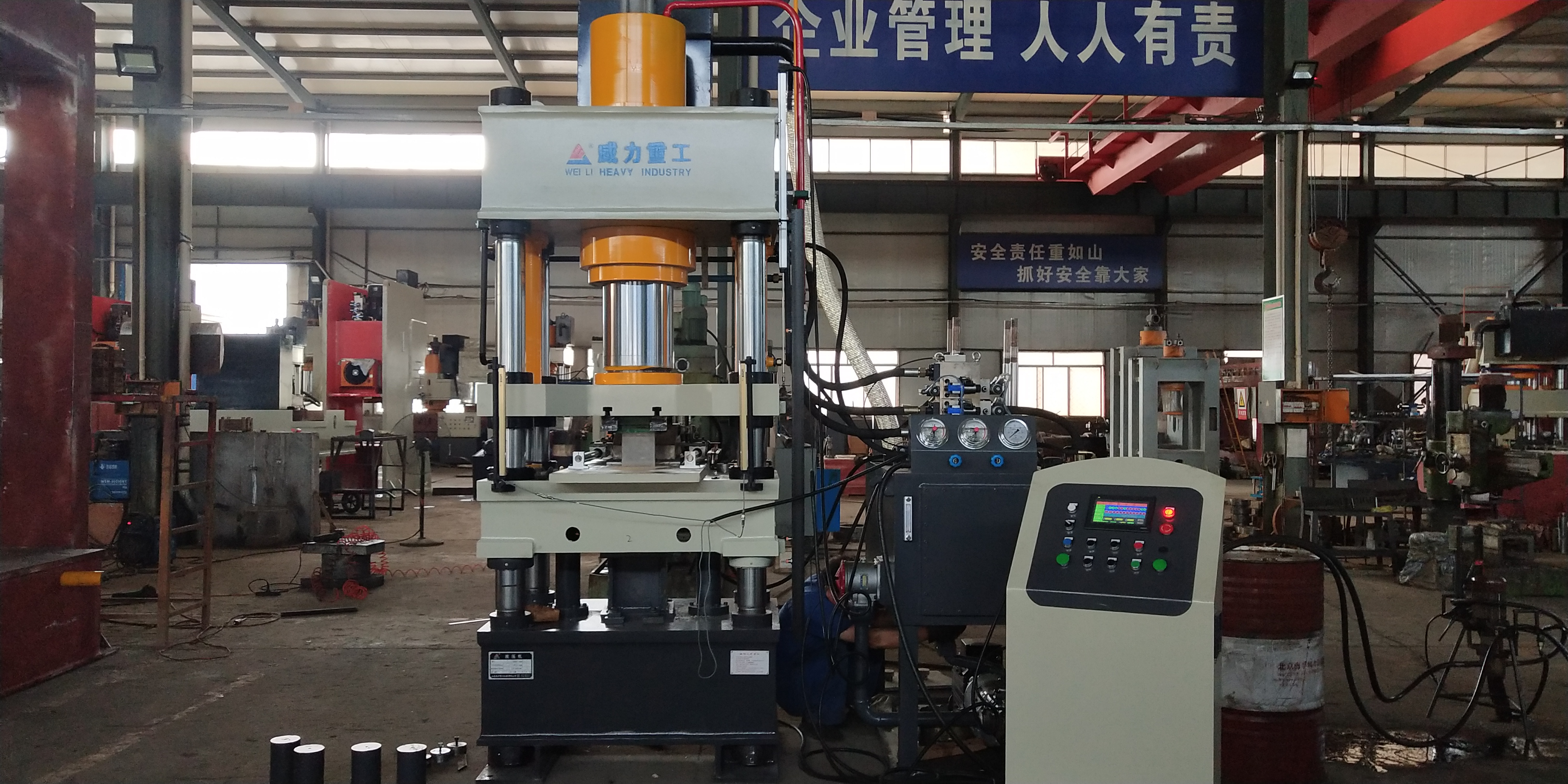 在沿海地區(qū)漁業(yè)是支柱產業(yè),對漁網的需求是非常大的。漁網上必不可少的便是漁網墜,漁網墜的生產一般采用鐵粉粉末成型工藝,這就離不開液壓機設備。山東威力設計生產了一款漁網墜粉末成型液壓機,四梁四柱式結構,可以將鐵粉混合配比通過液壓機一次壓制成型。