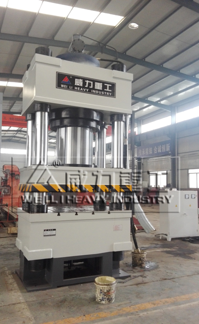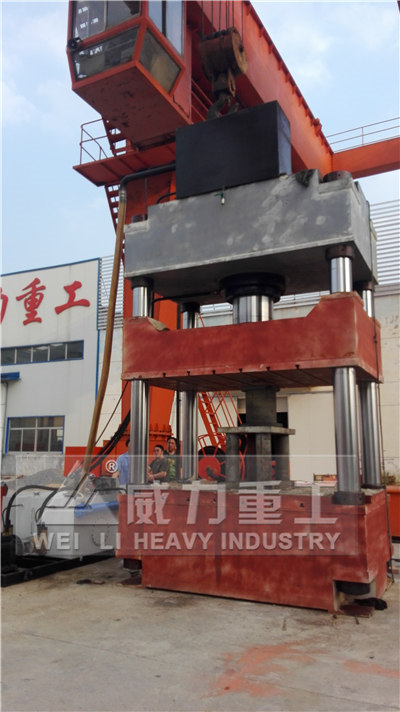 液壓機由主機及控制機構兩大部分組成。液壓機主機部分包括機身、主缸、頂出缸及充液裝置等。動力機構由油箱、高壓泵、低壓控制系統、電動機及各種壓力閥和方向閥等組成。動力機構在電氣裝置的控制下,通過泵和油缸及各種液壓閥實現能量的轉換,調節和輸送,完成各種工藝動作的循環。液壓缸:將液壓能轉化為機械能液壓傳動是利用液體壓力來傳遞動力和進行控制的一種傳動方式。液壓裝置是由液壓泵,液壓缸,液壓控制閥和液壓輔助元件。山東威力重工機床有限公司根據客戶需求定制非標液壓機。如下圖參考